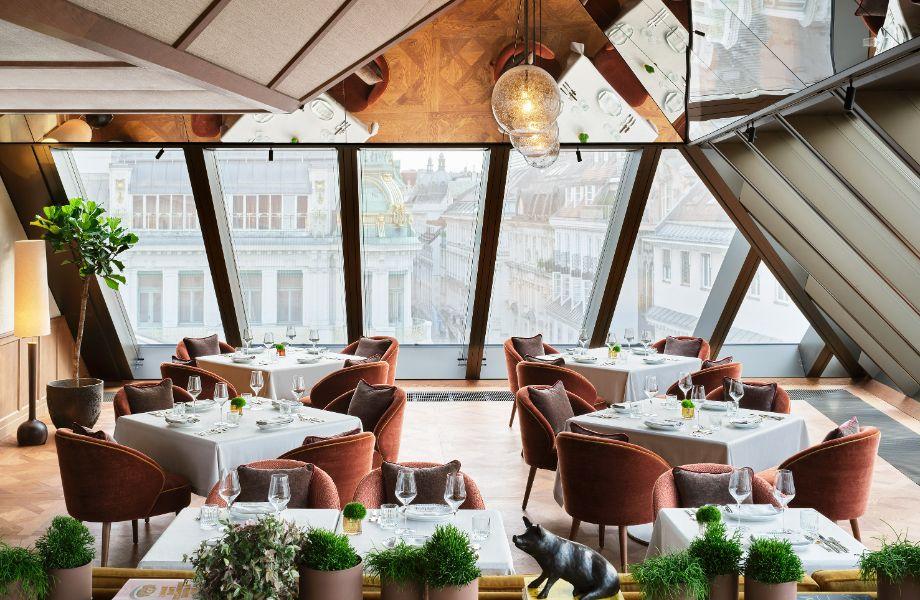 When Rosewood Vienna launched in 2022, it breathed new life into a somewhat staid hotel landscape. In this fairytale city that’s as old as time, it’s arrival could easily read as a trope-filled modern design narrative: take a landmark building – here, a 19th-century bank headquarters and Mozart’s one-time apartment – spruce up some original features, then dress with contemporary trappings. But this slick sophisticate has a far more compelling story to tell. It’s changing the very fabric of Vienna’s hospitality scene. You’ll find it amid imposing art nouveau and rococo buildings on Petersplatz. The rising neoclassic structure has been primped by local architects, who’ve etched out an inner atrium and landed a swoon-worthy, glass-clad rooftop bar and restaurant atop the seventh floor. Vying for attention, grand environs – plush velvets, gilded touchpoints, warm hues, in-room cocktail trolleys, art deco curves, mid-century musings et al – are gleaned from the creative minds at London-based interior design studio Alexander Waterworth. Lounge spaces abound, enticing locals and guests to hang out accordingly. Then there’s the culinary offering, a convivial hotbed of modern Austrian fare. For a taste of the high life, the spa is one of the city’s finest. And the service is exquisite throughout.